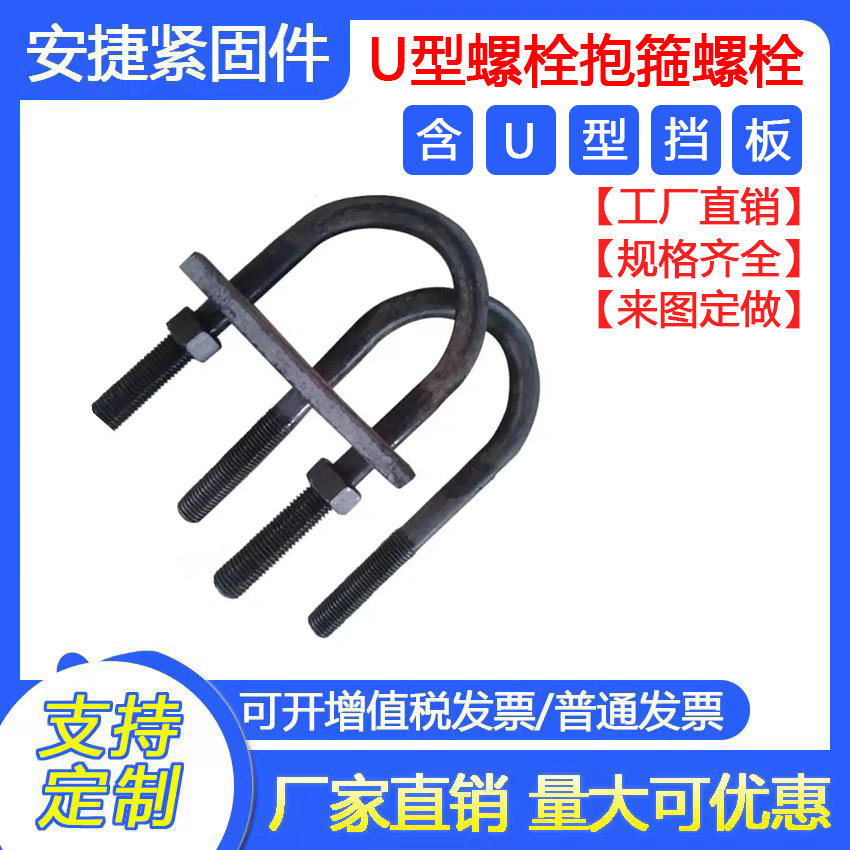 厂家供应国标U型螺栓 方U螺杆热镀锌管卡预埋英制美制U型丝螺栓