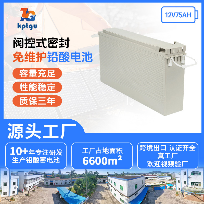 现货铅酸电池前置端子免维护铅酸蓄电池12V75AH太阳能阀控式电池