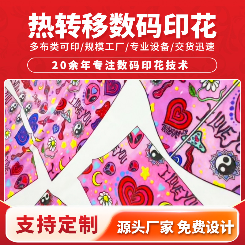 数码印花加工 多款印花布料批发 爱心卡通图案服装面料涤纶绒布