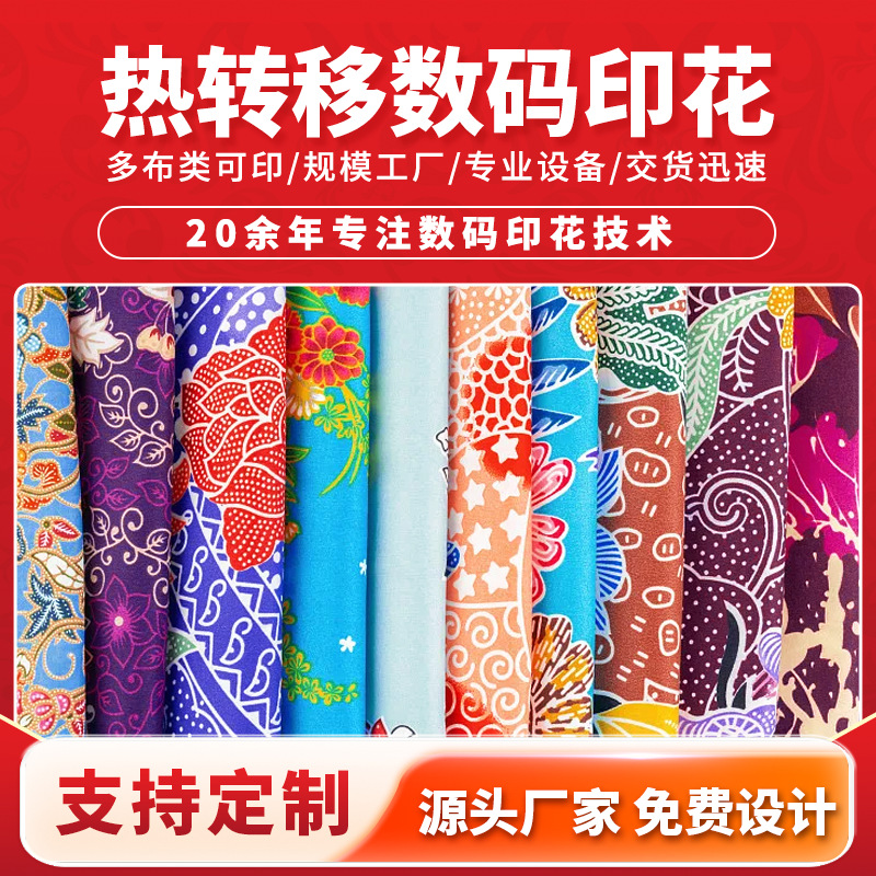 厂家供应 热转移数码印花厂家定 制涤纶印花面料碎花图案印染