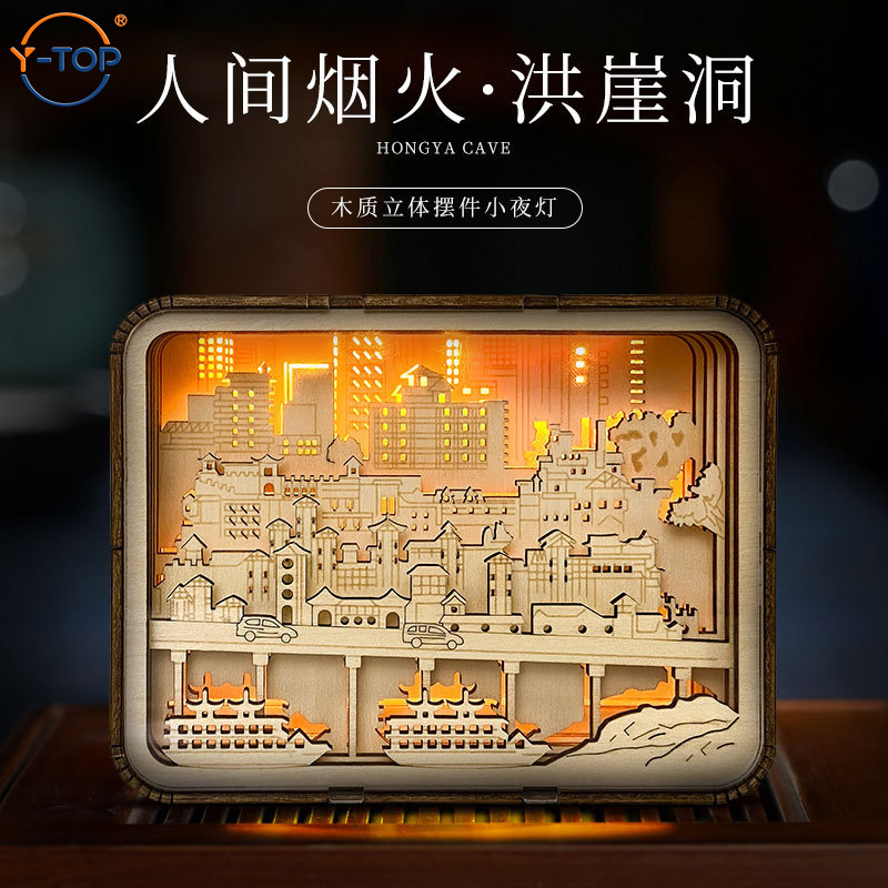 洪崖洞木雕灯文创木质摆件旅游景区纪念品家居氛围小夜灯礼物木艺