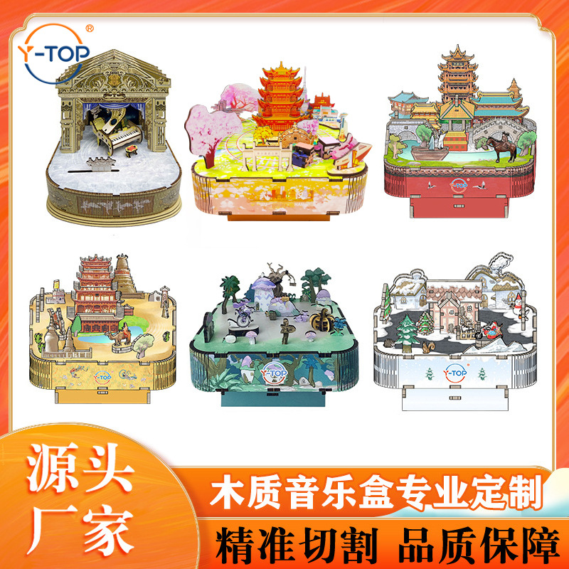 城市文创音乐盒手工DIY拼装八音盒3d立体桌面摆件创意圣诞礼物
