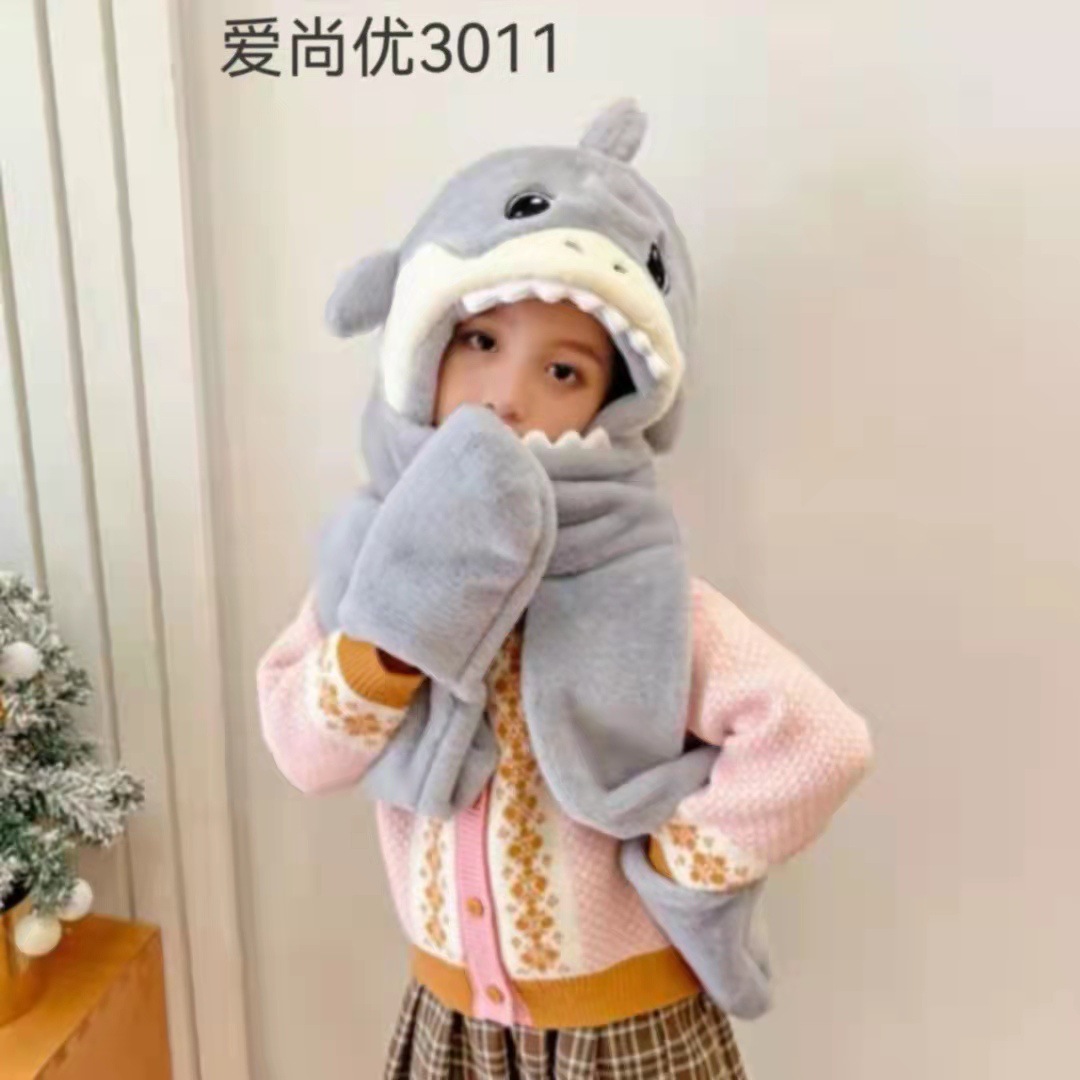 爱尚优网红抖音爆款一体帽学生冬季户外骑行防寒保暖可爱鲨鱼围脖