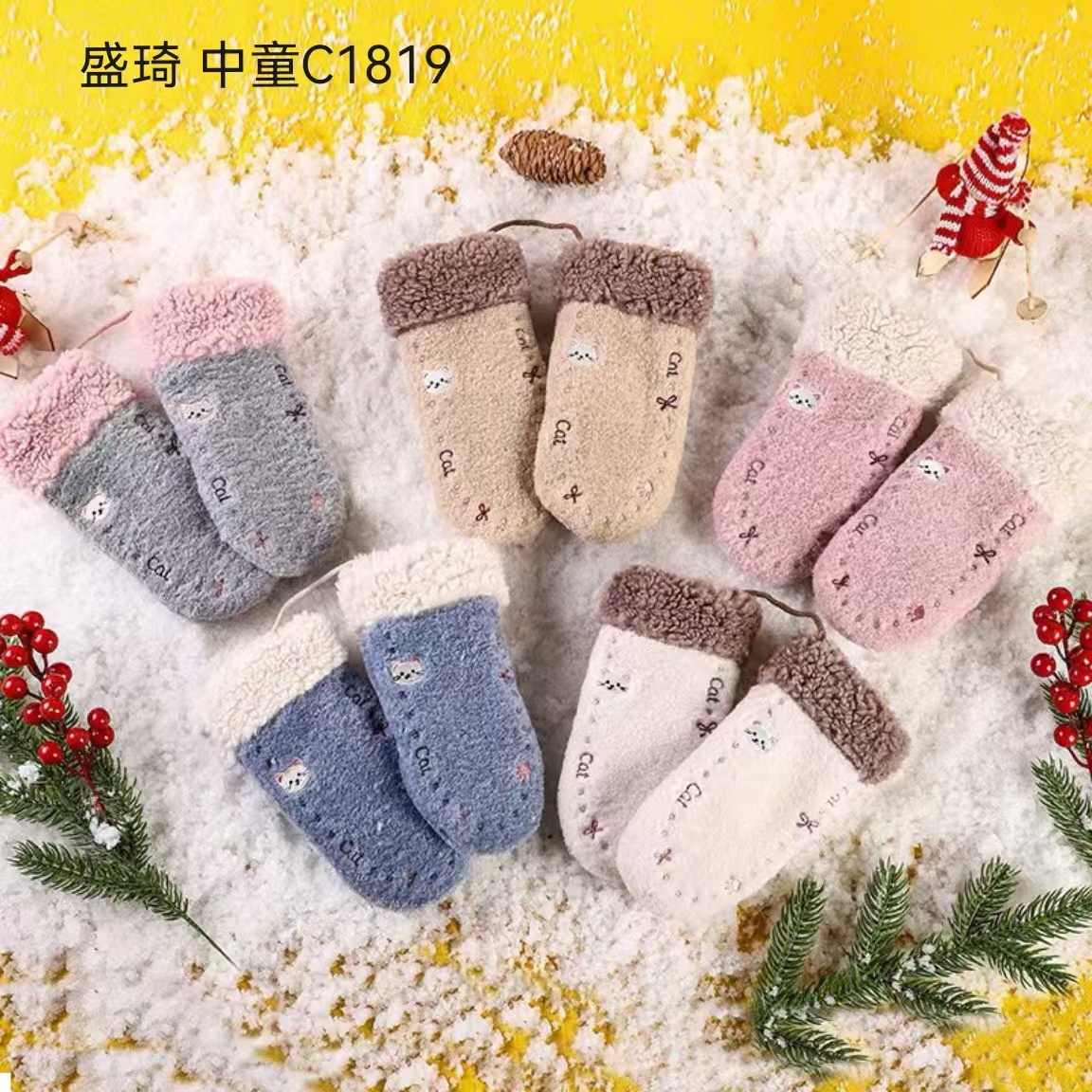 毛绒手套女冬季可爱加绒保暖全包学生儿童挂脖户外防寒加厚情侣款