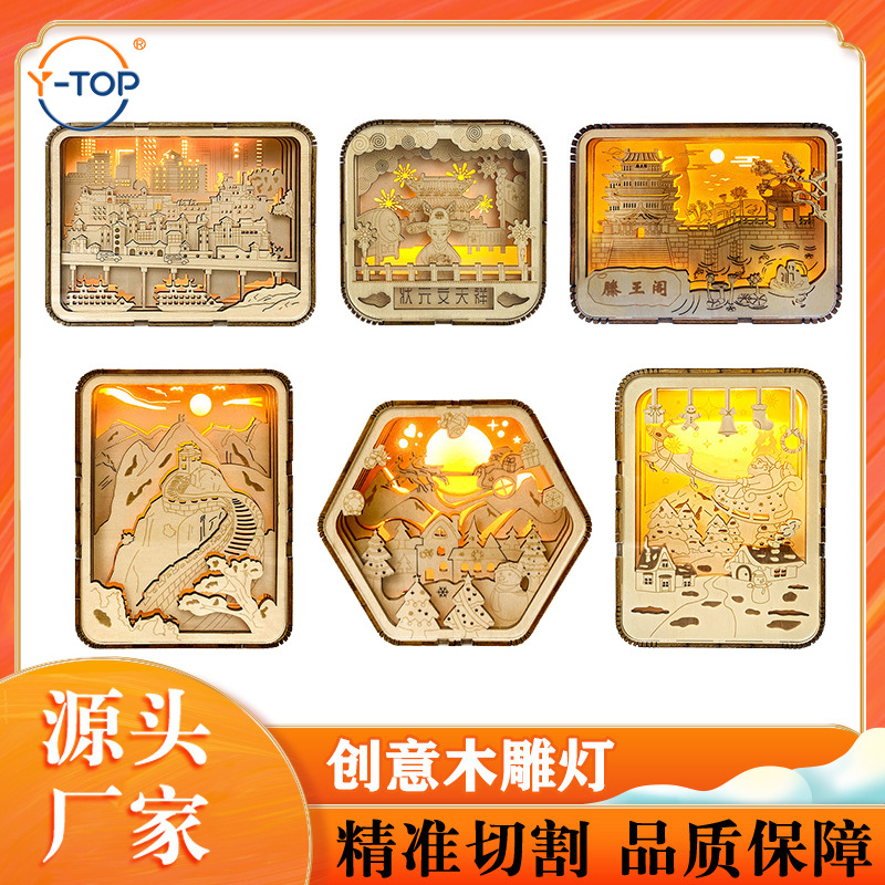 国潮文创木雕灯手工拼装桌面摆件创意3d小夜灯著名景区旅游纪念品