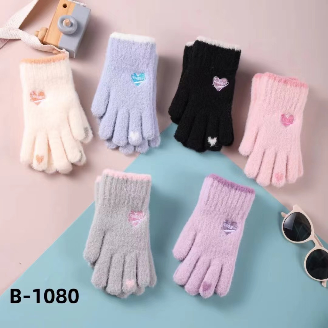 2025云娜丝新款冬季保暖露指可触屏手套 针织可爱笑脸时尚拼色