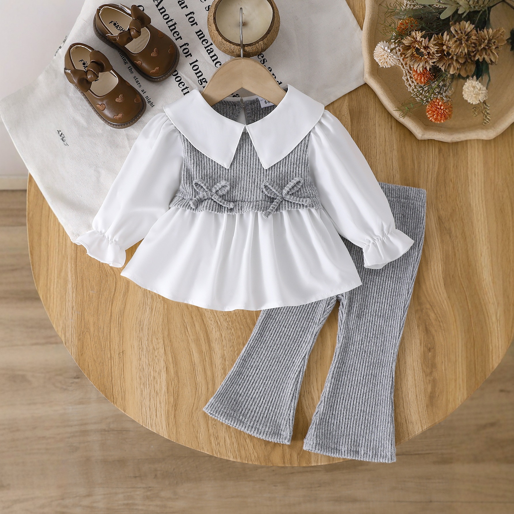 女童公主风假两件衬衫套装 秋季纯色可爱两件套
