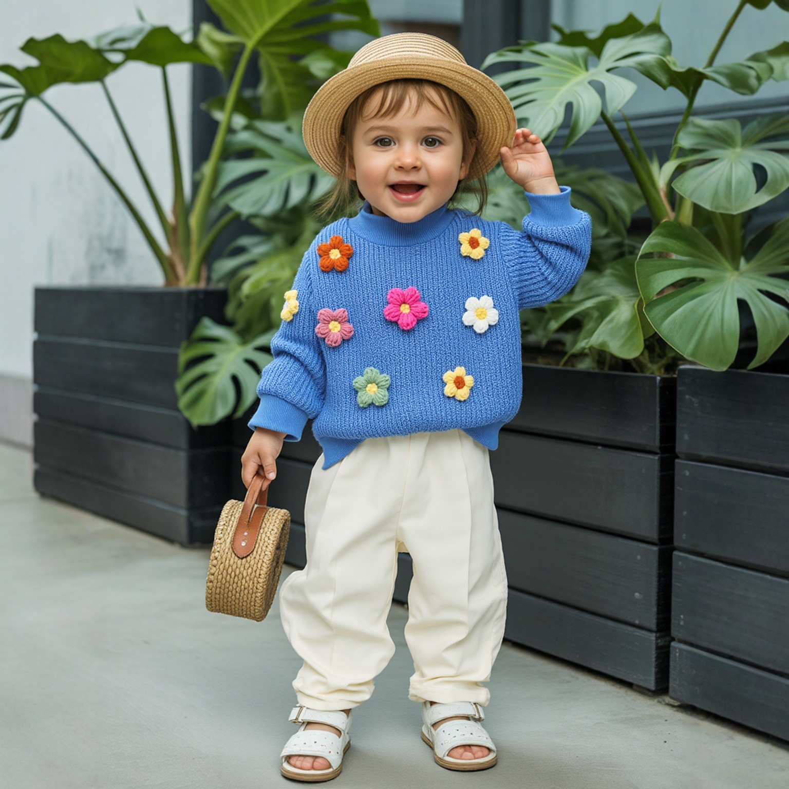 女童花朵针织套装2025新款春秋两件套中小童可爱时尚