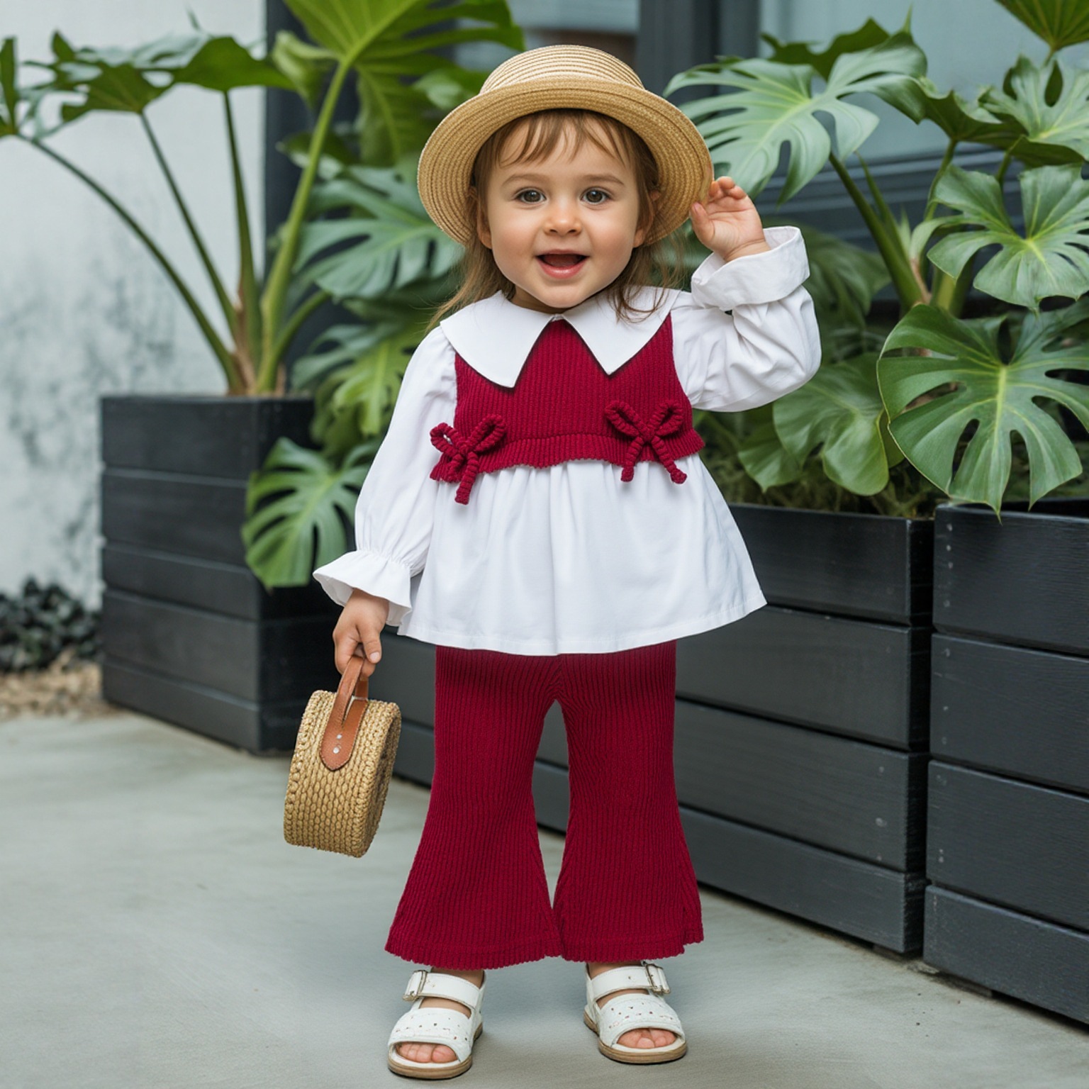 2025新款白色女童长袖套装可爱学院风两件套秋装.女小童两件套
