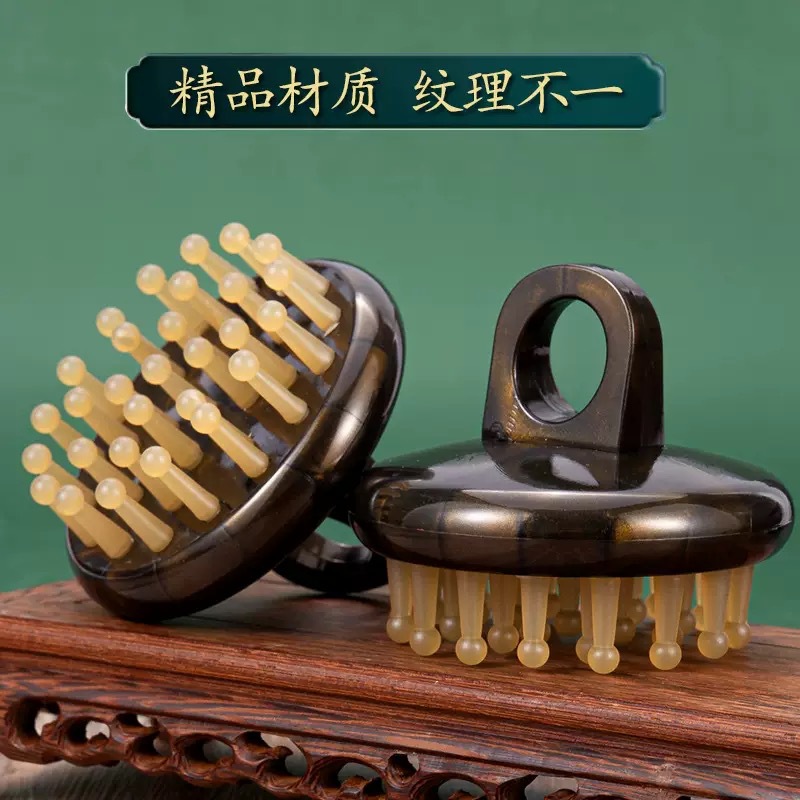 28齿钉钉羊角齿居家紫光檀羊角按摩梳头部经络梳黑檀木梳子指环梳