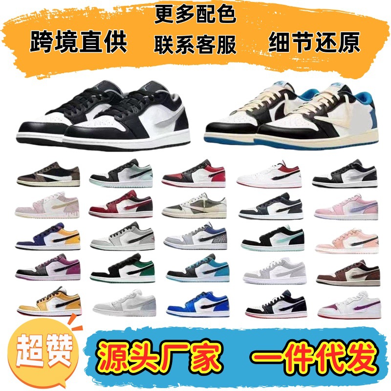 莆田鞋aj1低帮闪电倒钩黑武士藤原浩摩卡篮球鞋乔1男女休闲运动鞋