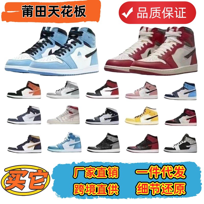 莆田外贸AJ1高帮篮球鞋烟灰黑曜石aj1男女情侣校园百搭潮运动板鞋