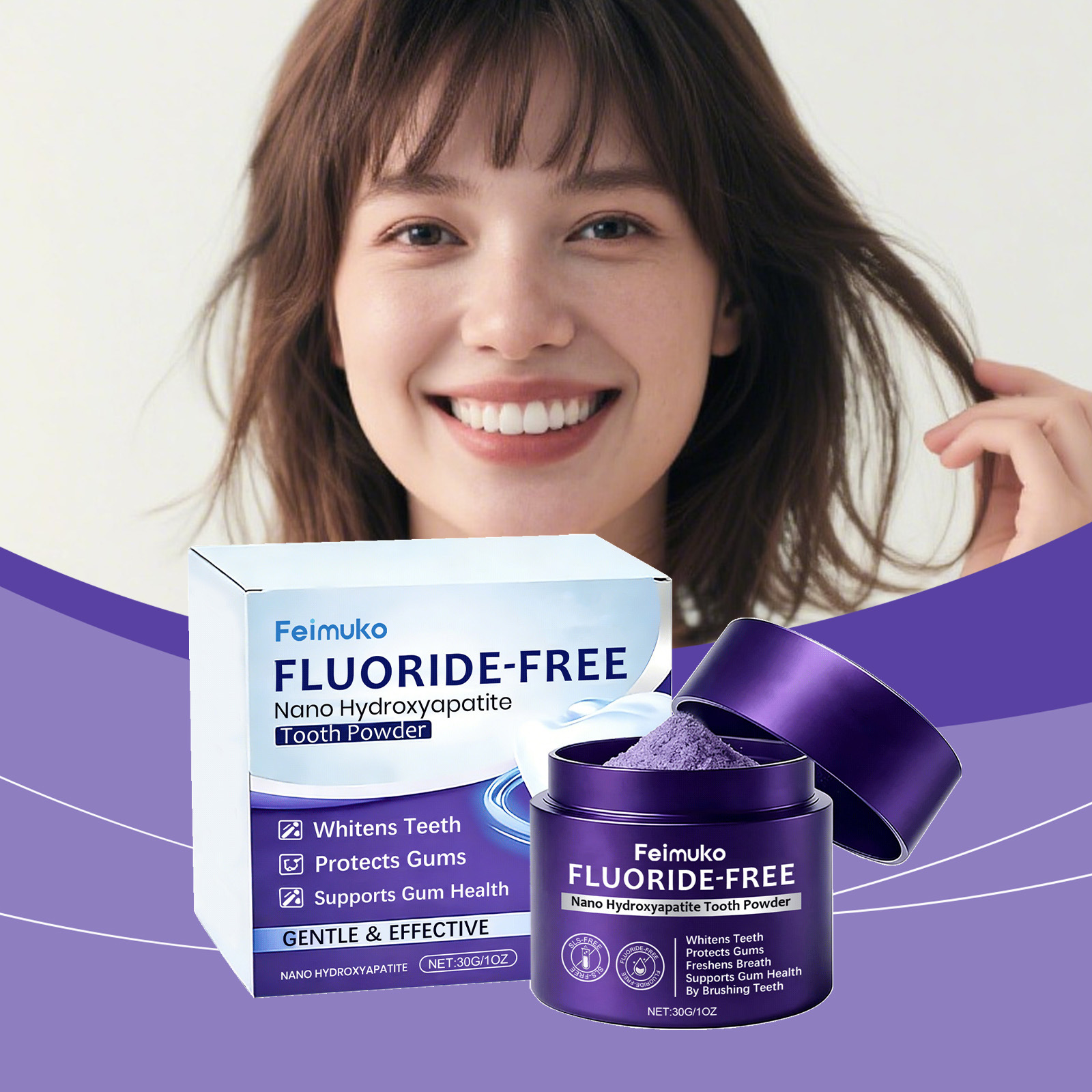 Feimuko牙龈护理牙粉 温和护理清洁牙齿污渍口腔清新异味粉状牙膏