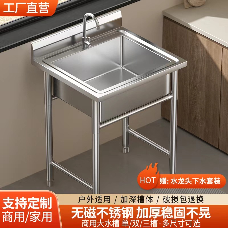 商用不锈钢水槽单双三槽带支架厨房洗菜盆洗手盆洗碗池水池家用