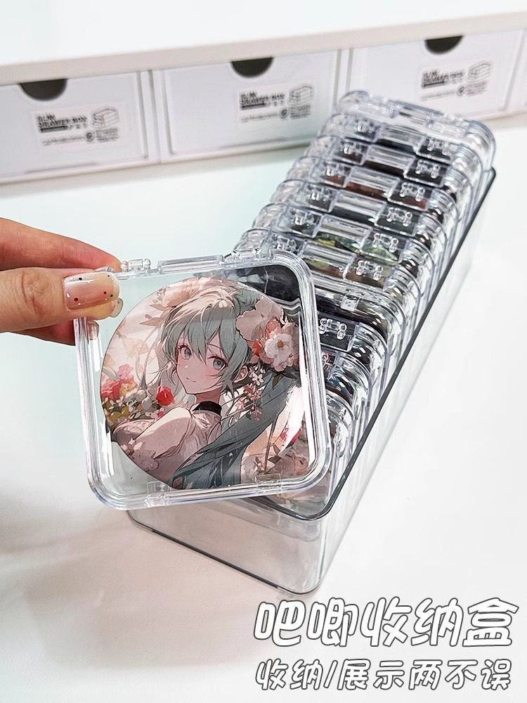 吧唧亚克力密封收纳盒徽章单个保护壳套盒子5875mm防潮展示架谷子