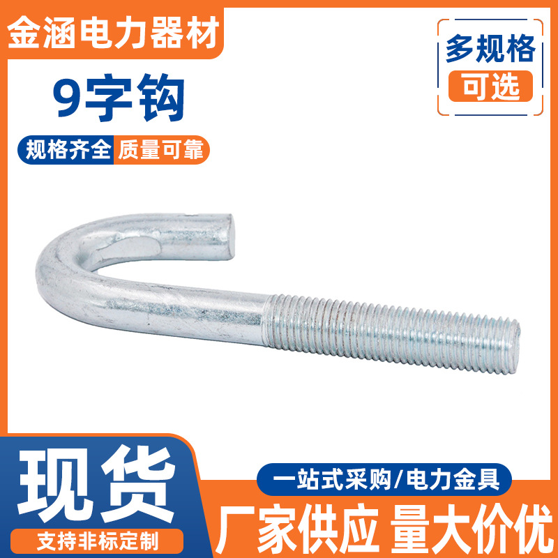 9子勾挂钩金属挂钩超市五金铁挂吊钩挂勾子国标碳钢9字异型螺栓