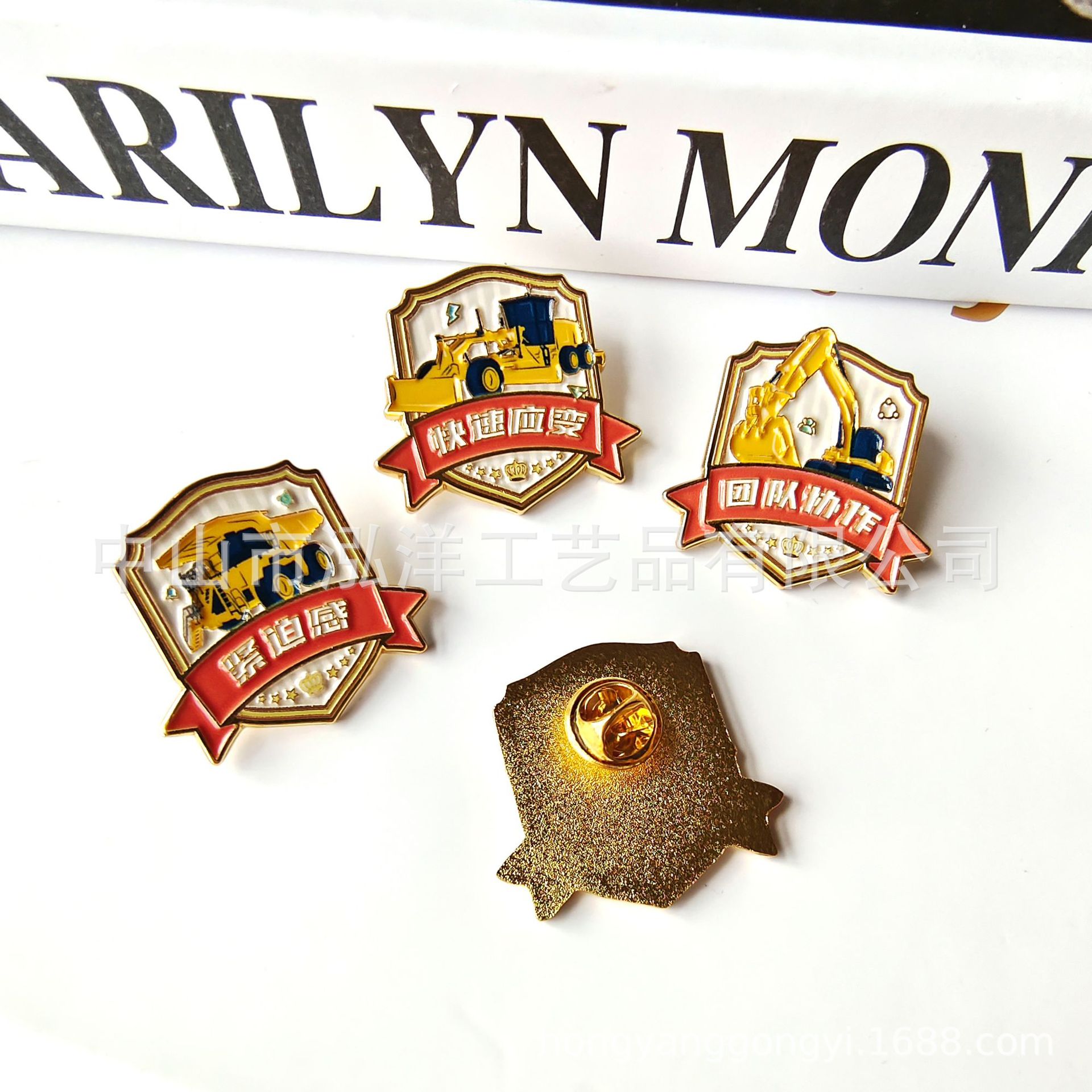 创意锌合金镀金徽章 新品文创卡通励志工程车纪念金属胸章定制