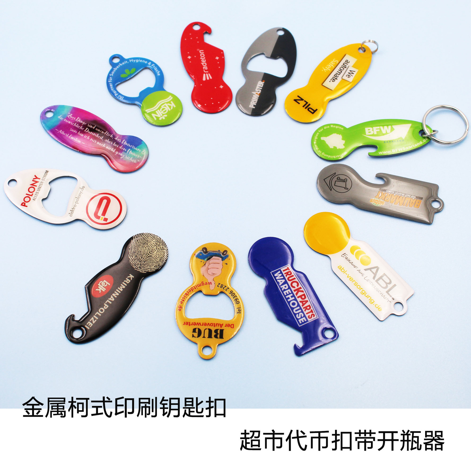 柯式印刷滴胶钥匙扣金属超市代币扣带开瓶器款式多可来稿设计
