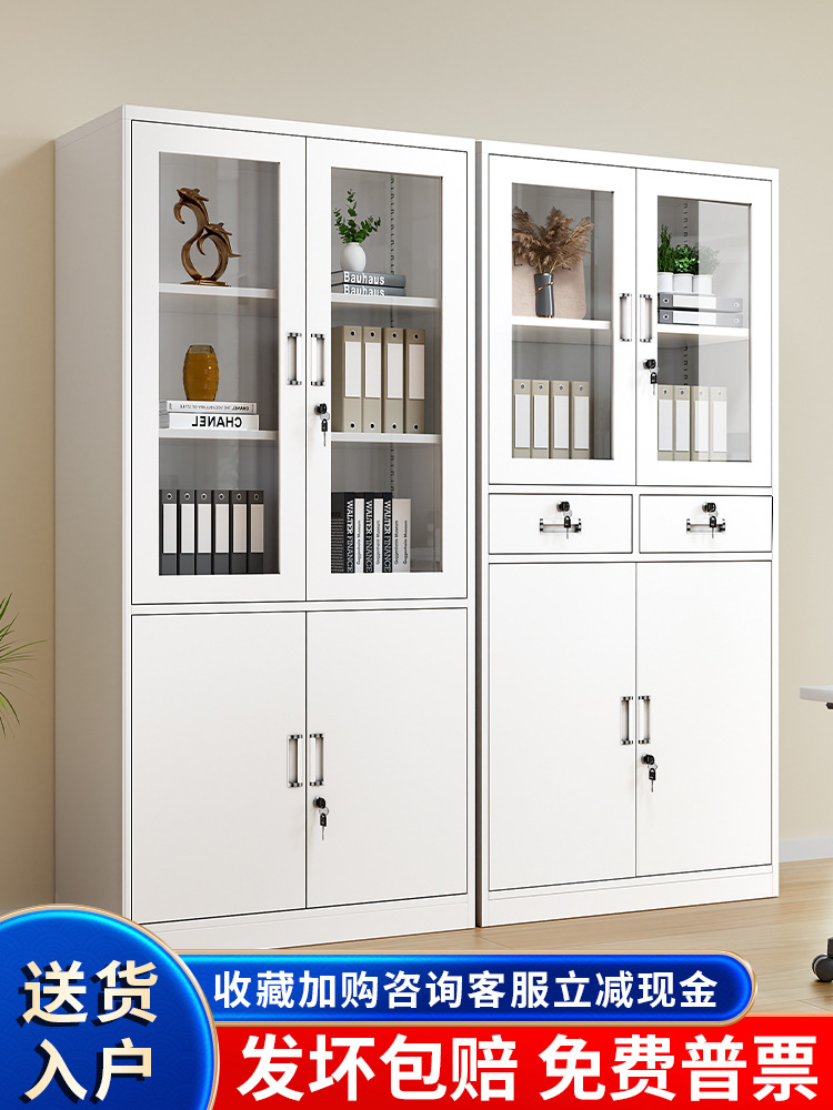 铁皮文件柜办公室资料档案书柜家用置物带锁抽屉钢制收纳储物柜子