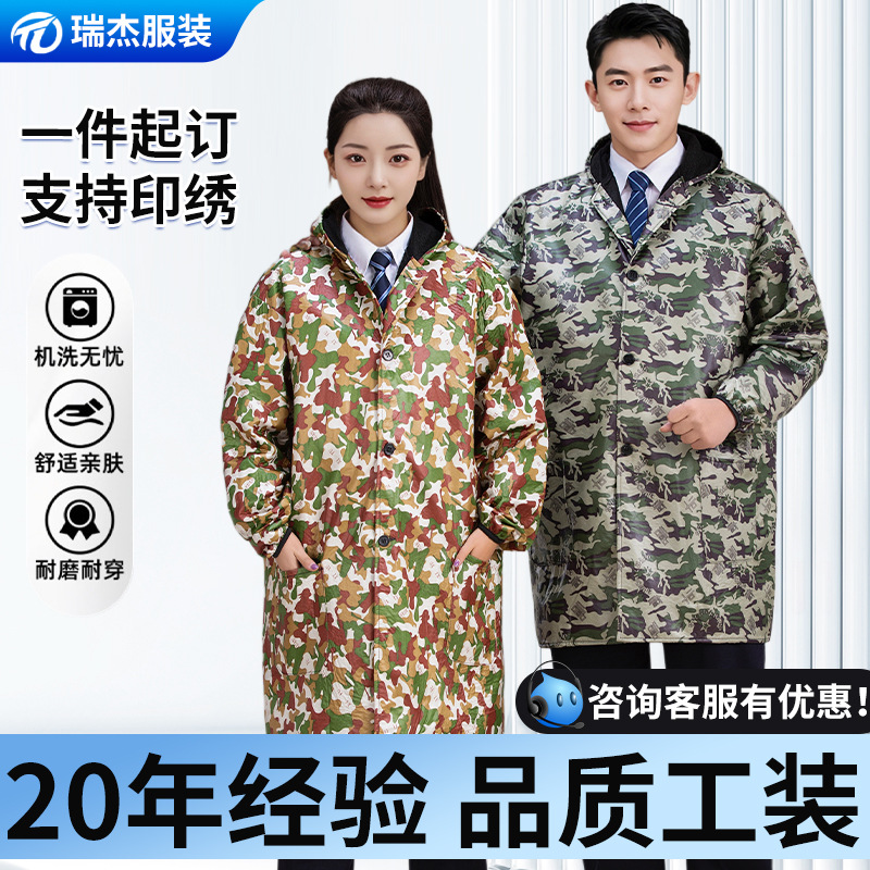 加绒大褂工作服男保暖劳保服迷彩大褂防水耐脏汽修服长袖服装工装