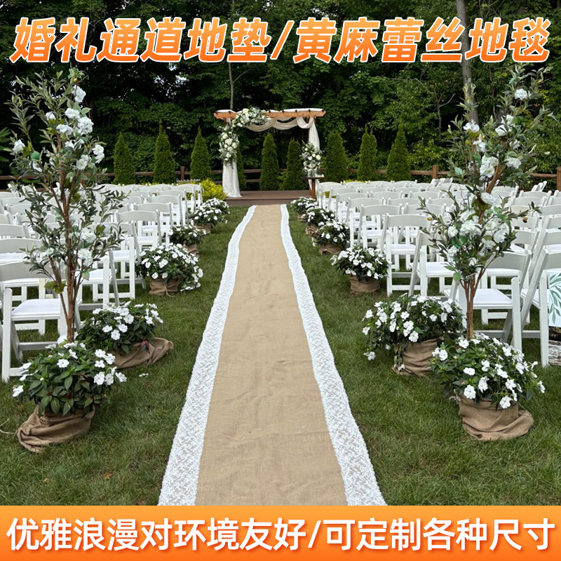 黄麻蕾丝地垫T台走秀喜庆加厚庆典展览开业迎宾活动地毯婚礼地垫