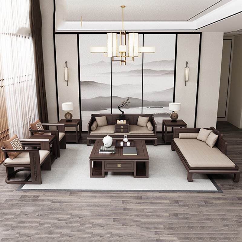 新中式乌金木沙发组合禅意简约大小户型客厅仿古中式罗汉沙发现货
