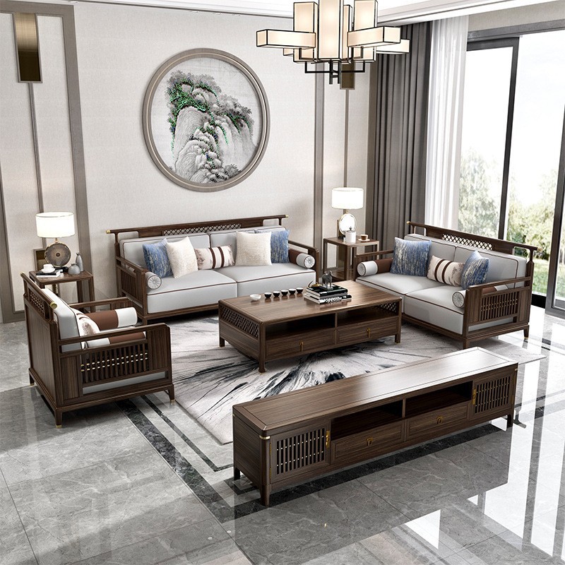 新中式乌金木沙发实木现代简约中式大小户型客厅沙发组合别墅家具