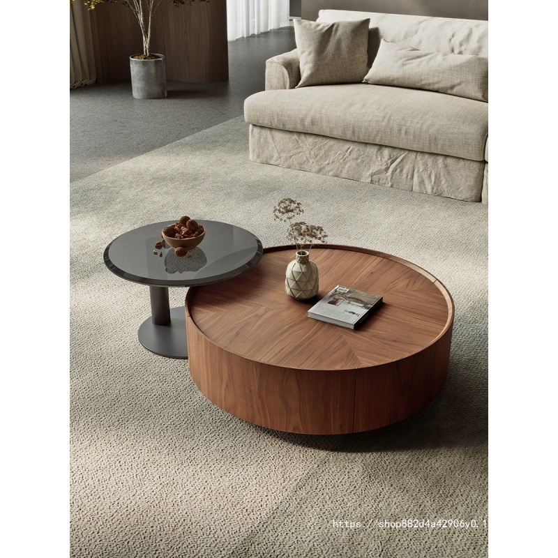 中古风简约胡桃木圆形茶几轻奢高级极简现代客厅小户型圆型北欧
