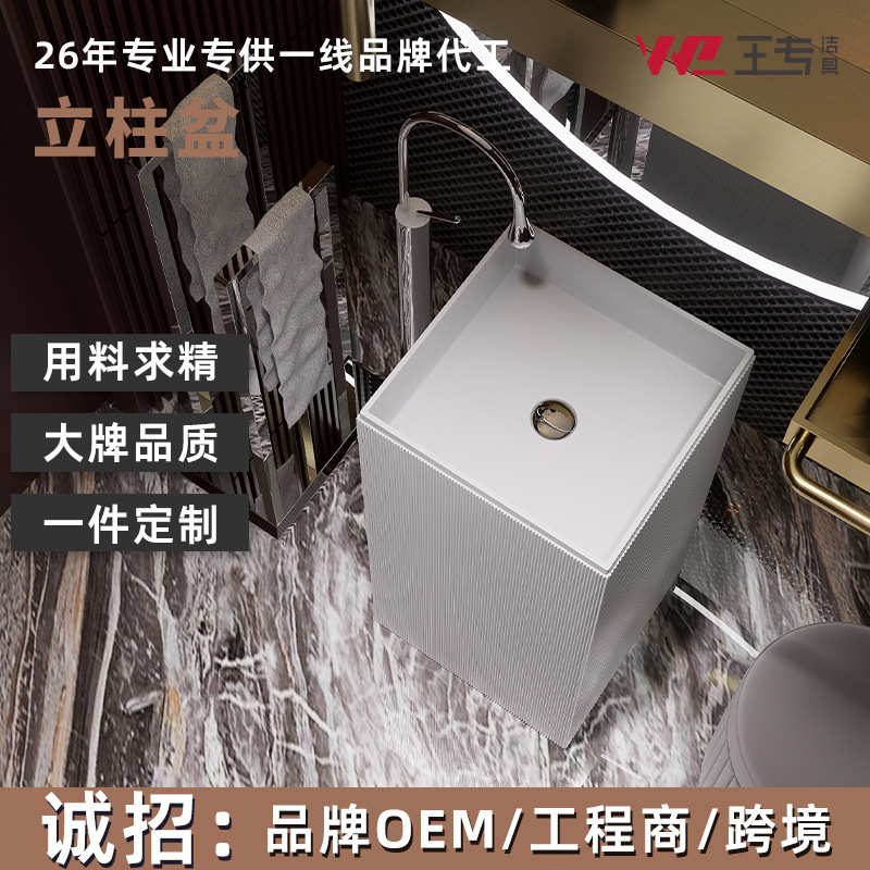 立柱式洗手盆 酒店民宿人造石立柱盆方形简约卫生间落地洗手盆