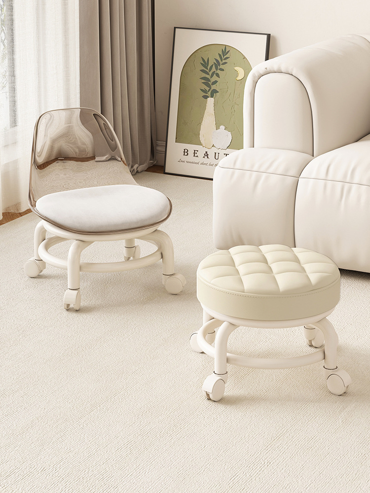 万向轮小凳子拆快递滑轮矮凳奶油风椅子家用小型擦地美缝理货圆凳