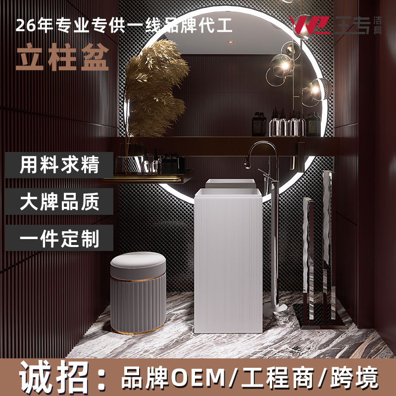 人造石立柱盆 竖纹人造石洗手池立柱盆酒店民宿一体式洗脸盆柱盆