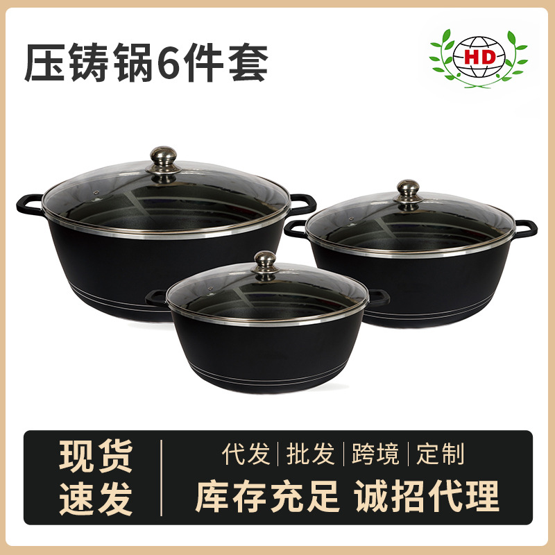 普通款6件套组合大汤锅套装32-36-40CM大容量压铸铝不粘锅黑色