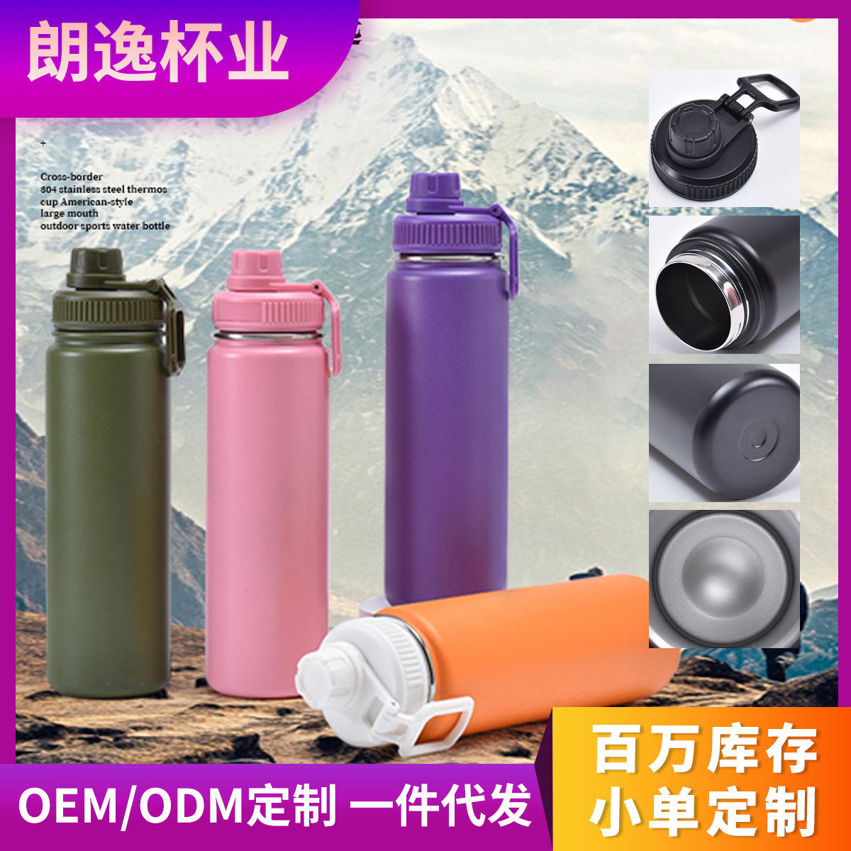 跨境新款304不锈钢750太空壶大容量户外运动水壶美式大口保温杯