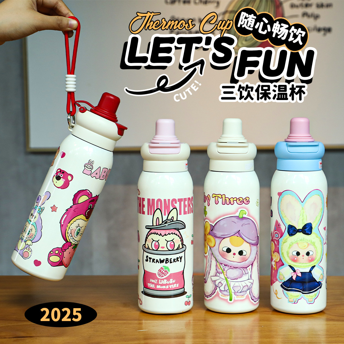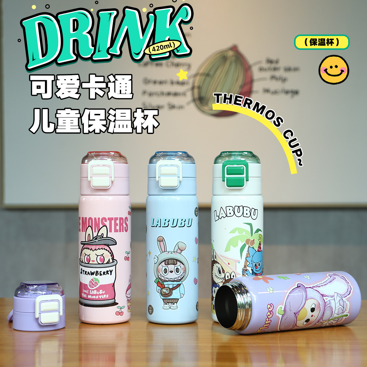 新款labubu卡通保温杯拉布布弹扣杯316不锈钢真空豌豆杯便捷家用