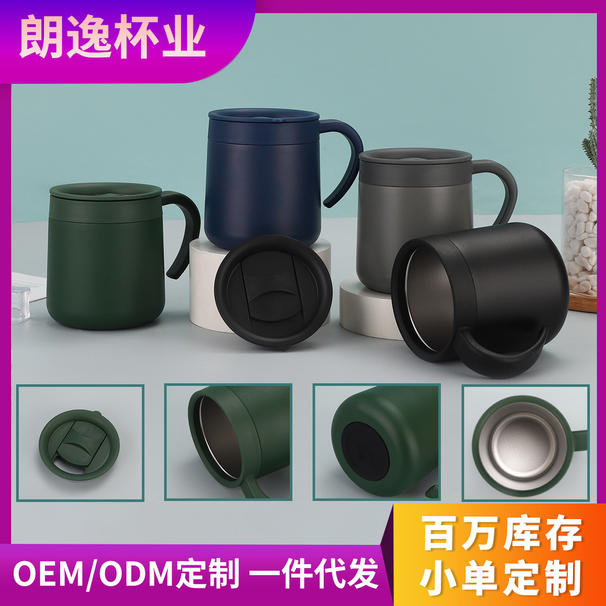 跨境新款304不锈钢保温杯商务办公双层咖啡杯便携带手柄马克杯