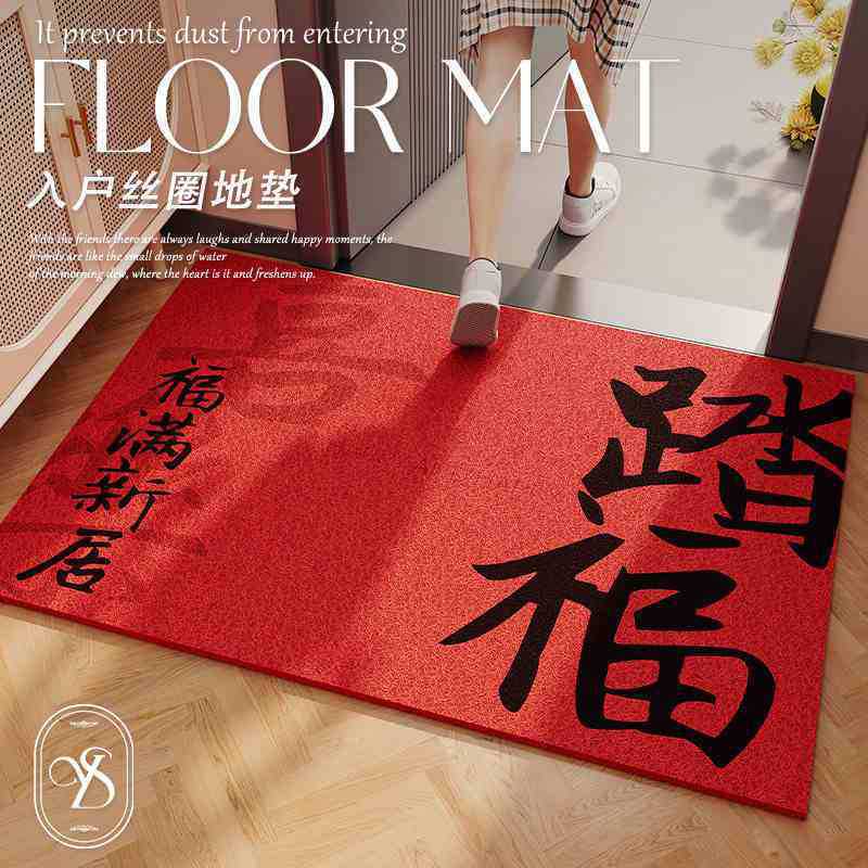 跨境马年新年红色地垫喜庆入户玄关耐磨脚垫大门口进门防滑脚踩垫