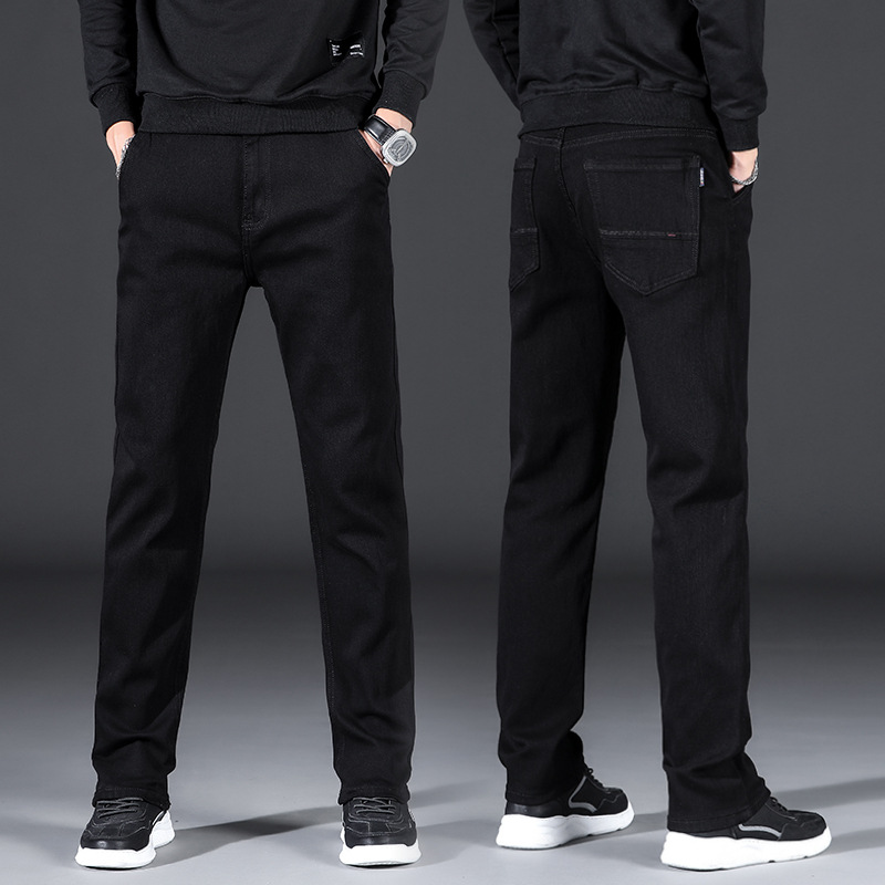 高端纯黑不掉色牛仔裤男士直筒宽松商务休闲男裤秋冬新款纯棉裤子
