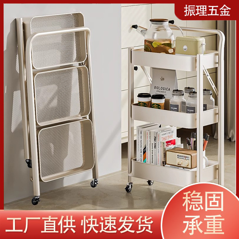 家用置物架小推车 免打孔可移动夹缝免安装折叠碳钢小推车置物架