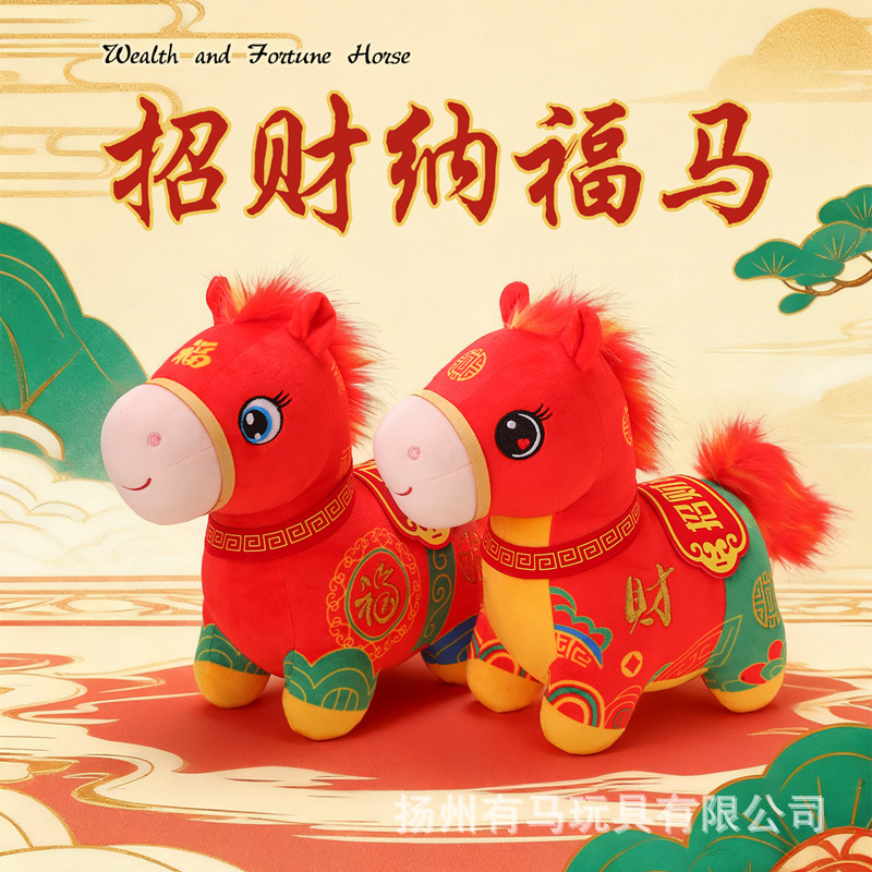 新品热卖品优招财纳福马公仔马年生肖吉祥物玩偶商务毛绒玩具批发