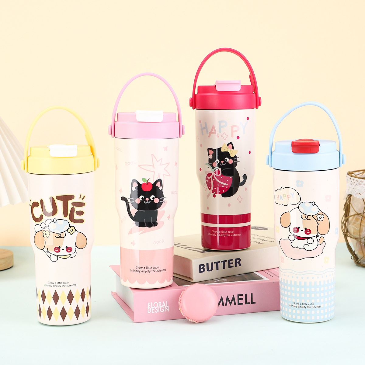 高颜值新款卡通儿童保温杯316不锈钢双饮水杯可爱学生便携拎拎壶