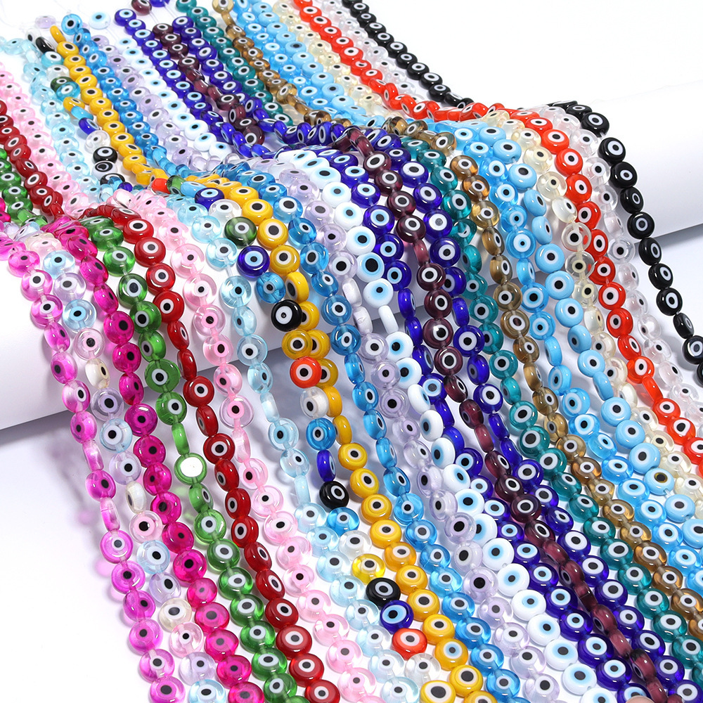 彩色千花琉璃珠扁圆散珠恶魔之眼扁圆珠 diy手链项链串珠饰品配件