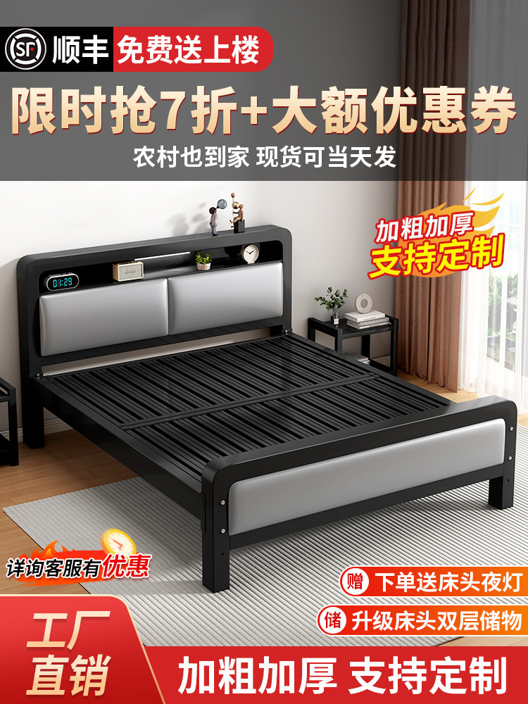 铁艺床双人床家用1米8加粗加厚铁床不锈钢单人床架铁架床出租房用