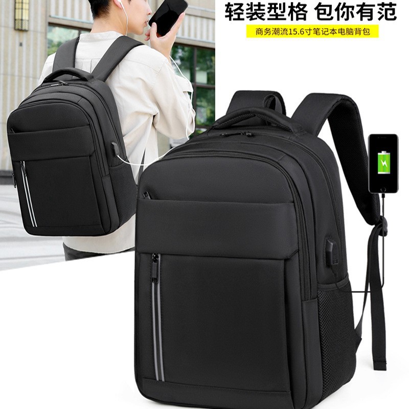 跨境男士双肩包印LOGO大容量背包商务通勤带反光条电脑包厂家批发