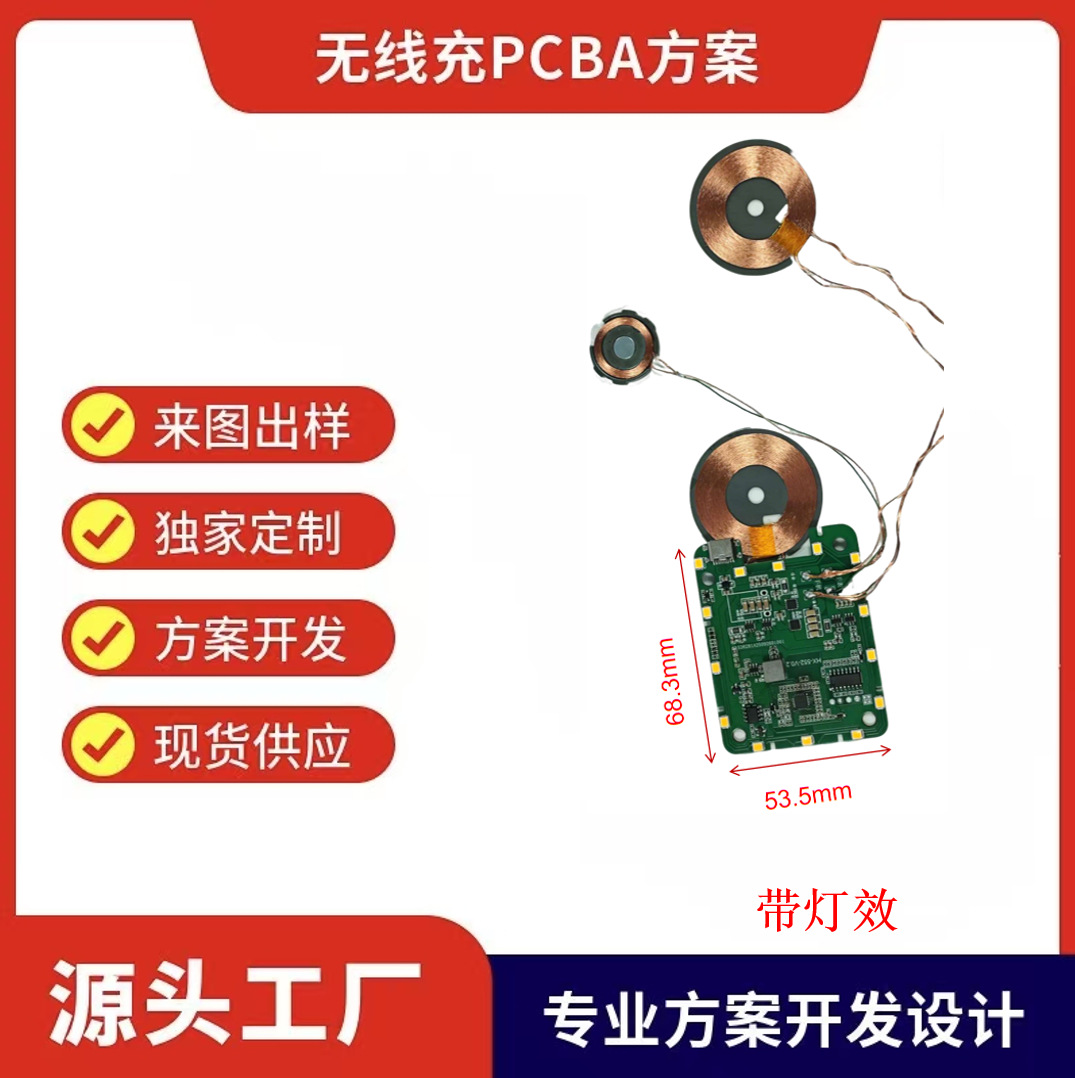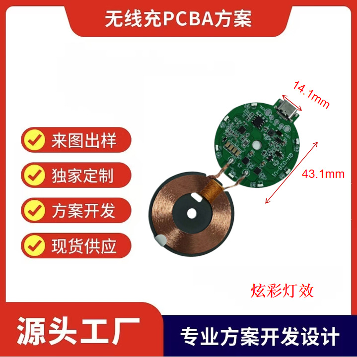 15W无线充电路板有炫彩跑马灯效PCBA板兼容10W7.5W无线充电模块