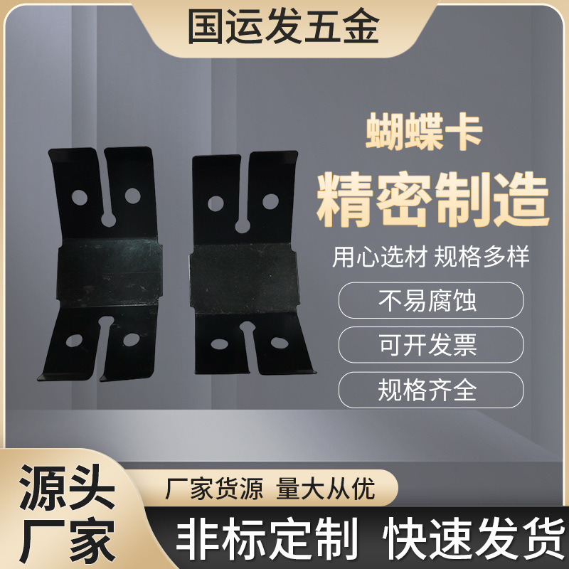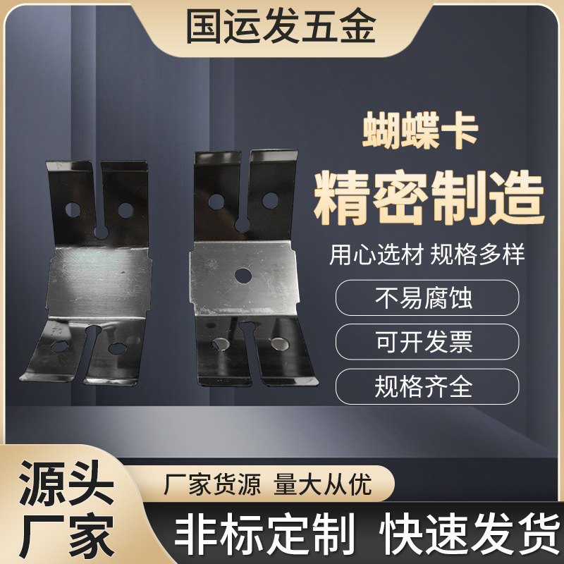 异型冲压件装修吊顶龙骨配件锰钢弹片弹簧烤漆材质蝴蝶卡批发供应