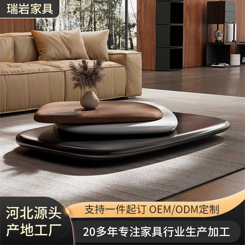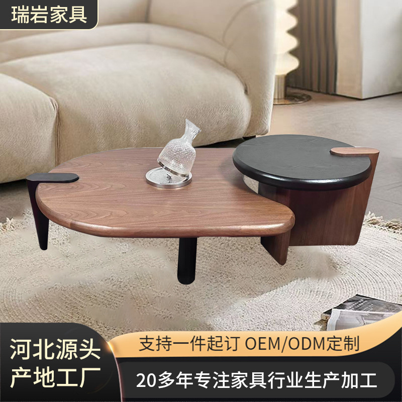 奶油复古风胡桃木纹云朵茶几现代简约法式轻奢不规则实木组合茶几