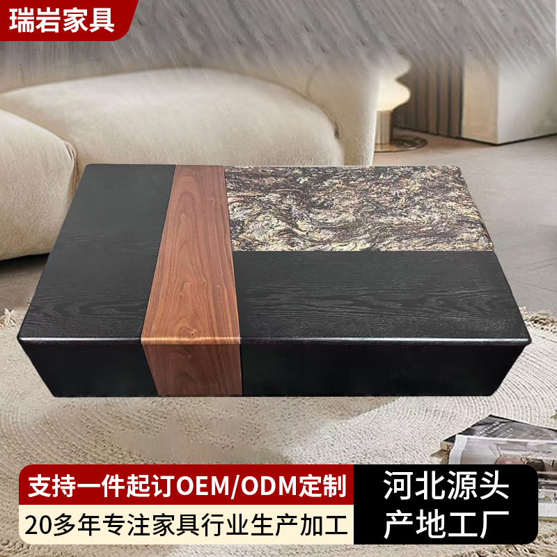 方形茶几组合岩板饰面简约客厅家用桌子带抽屉中古风创意茶几组合