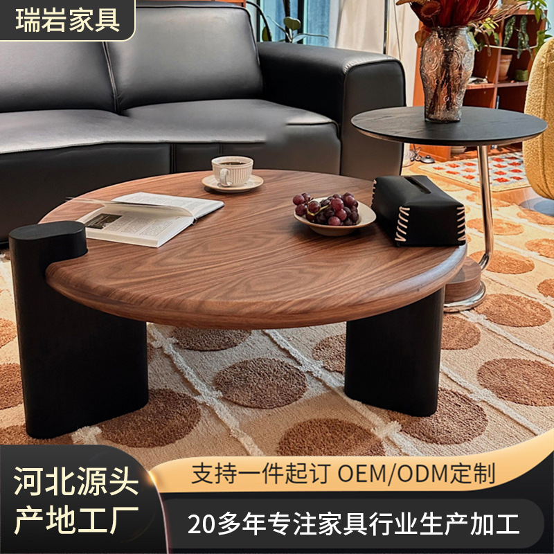 胡桃木茶几组合家用欧式小圆桌咖啡奶茶店简约边角茶几意式圆桌