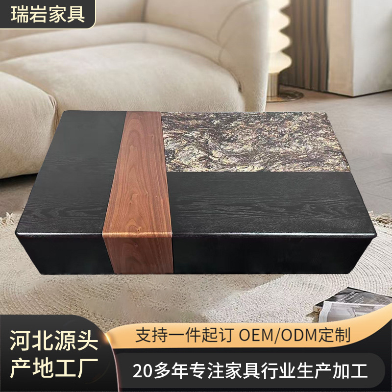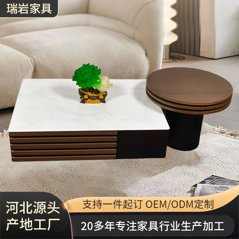 意式长方形大理石茶几家用客厅创意抽拉茶几胡桃色轻奢储物茶几