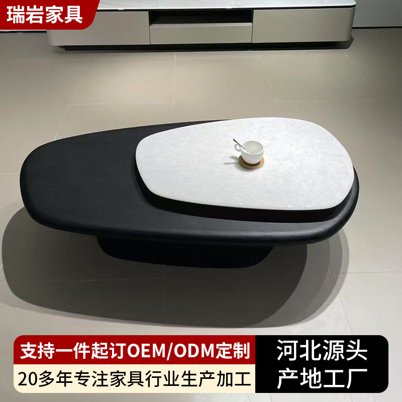 新款现代简约钻石白超晶石面小户型客厅家用中古风茶几
